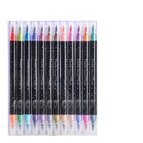 Rotuladores de doble punta con purpurina metálica con puntas de pincel para álbum DIY, tarjetas negras, álbum de recortes, suministros para manualidades