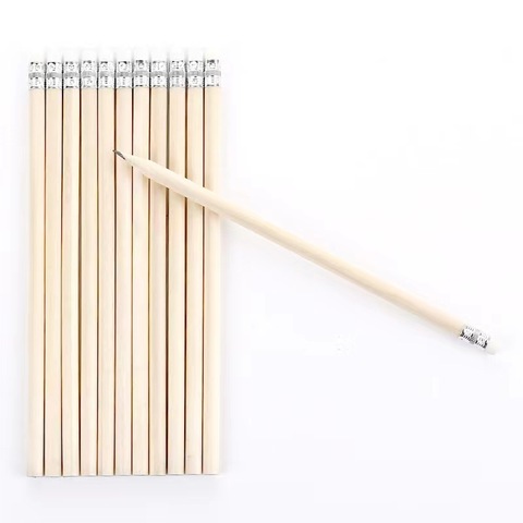 Factory Wholesale Stationery White Round Hb Wooden Pencils in Bulk Loose with Eraser and Custom logo