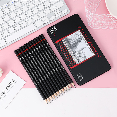 Custom Professional Sketch Pencils Metal Tin Box 12 Pcs Sketching Pencil Art Set